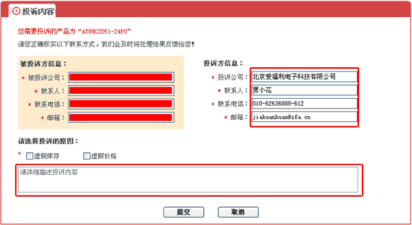 為了更好的規范網站上的現貨和價格信息,使信息更真實、更準確,讓采購者能夠更放心地在網站上詢價和采購,元器件交易網針對現貨、熱賣、優勢庫存特推出e投訴(價格、現貨)服務。
